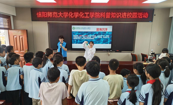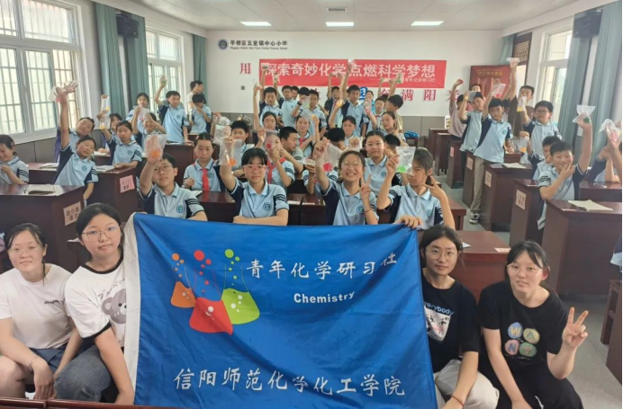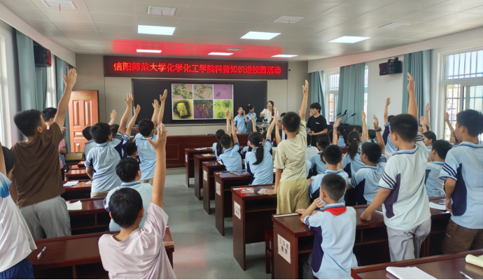 5月24日至31日是第二十五个全国科技活动周,6月6日,应平桥区科协邀请,Beat365唯一官方网站到平桥区五里镇中心小学开展“探索奇妙化学,点燃科学梦想”科普进校园活动。Beat365唯一官方网站党委副书记曲剧、指导老师张星、赖贞贞、严赫带领同学们参加了此次活动。