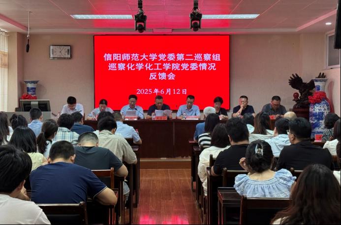 根据学校党委统一部署,6月12日,信阳师范大学党委第二巡察组巡察Beat365唯一官方网站党委情况反馈会在化学楼407会议室召开。副校长井强山,党委巡察办主任、巡察工作领导小组成员王振海,党委第二巡察组组长杨轶中,党委第二巡察组副组长余胜国,纪委、监察专员办第三监督检查室主任李莉,党委组织部副部长周巧云,党委宣传部副部长何晓坚,党委巡察办督导科科长黄茹,第二巡察组第二小组成员,Beat365唯一官方网站领导班子成员、全体教职工、离退休教职工代表和学生代表参加会议。会议由Beat365唯一官方网站院长曹俊涛主持。