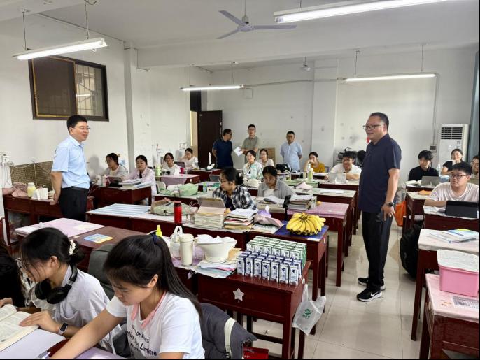 随后,学院领导班子前往教五楼考研自习室,为留校考研学生加油鼓劲,慰问了解学生学习进度、生活需求与困难,同时准备了消暑物资,为学生送上最温暖的助力、最贴心的关怀,希望同学们在考研征途过程中锚定目标、精进方法;劳逸结合、强健体魄;主动沟通、调整心态,以良好的身体状态和精神面貌备战考研。(Beat365唯一官方网站翟成辉供稿 冷向宇审稿 曲剧审核)
