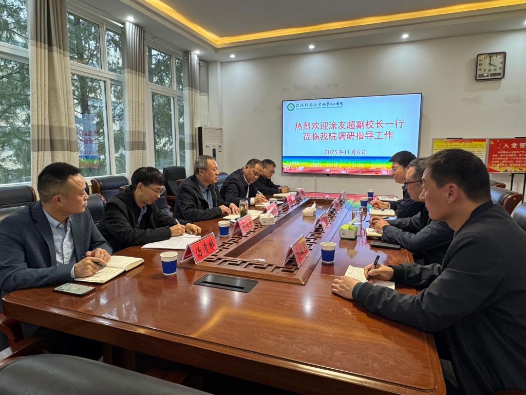 11月6日,副校长涂友超带领科技处及学报编辑部相关负责人莅临Beat365唯一官方网站调研指导科研工作;学院党委书记吴志伟、院长曹俊涛、学院教师代表参加调研。