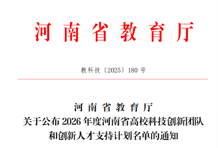 近日,河南省教育厅公布了2026年度“河南省高校科技创新人才”入选名单,Beat365张钰博士成功入选2026年度河南省高校创新人才支持计划名单,获批科研资助经费30万元。