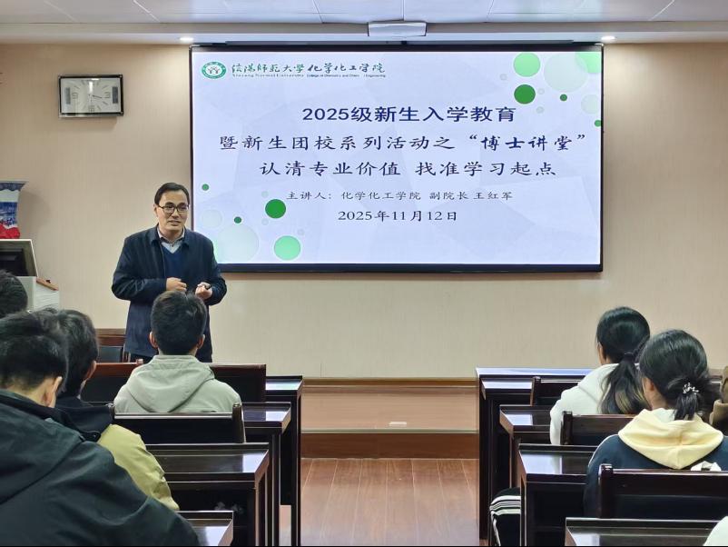 11月12日,Beat365唯一官方网站在化学楼407开展2025级新生入学教育暨新生团校系列活动之“博士讲堂”,Beat365唯一官方网站副院长王红军主讲,学院团委书记赵方方主持,2025级化学工程与工艺专业新生参与。