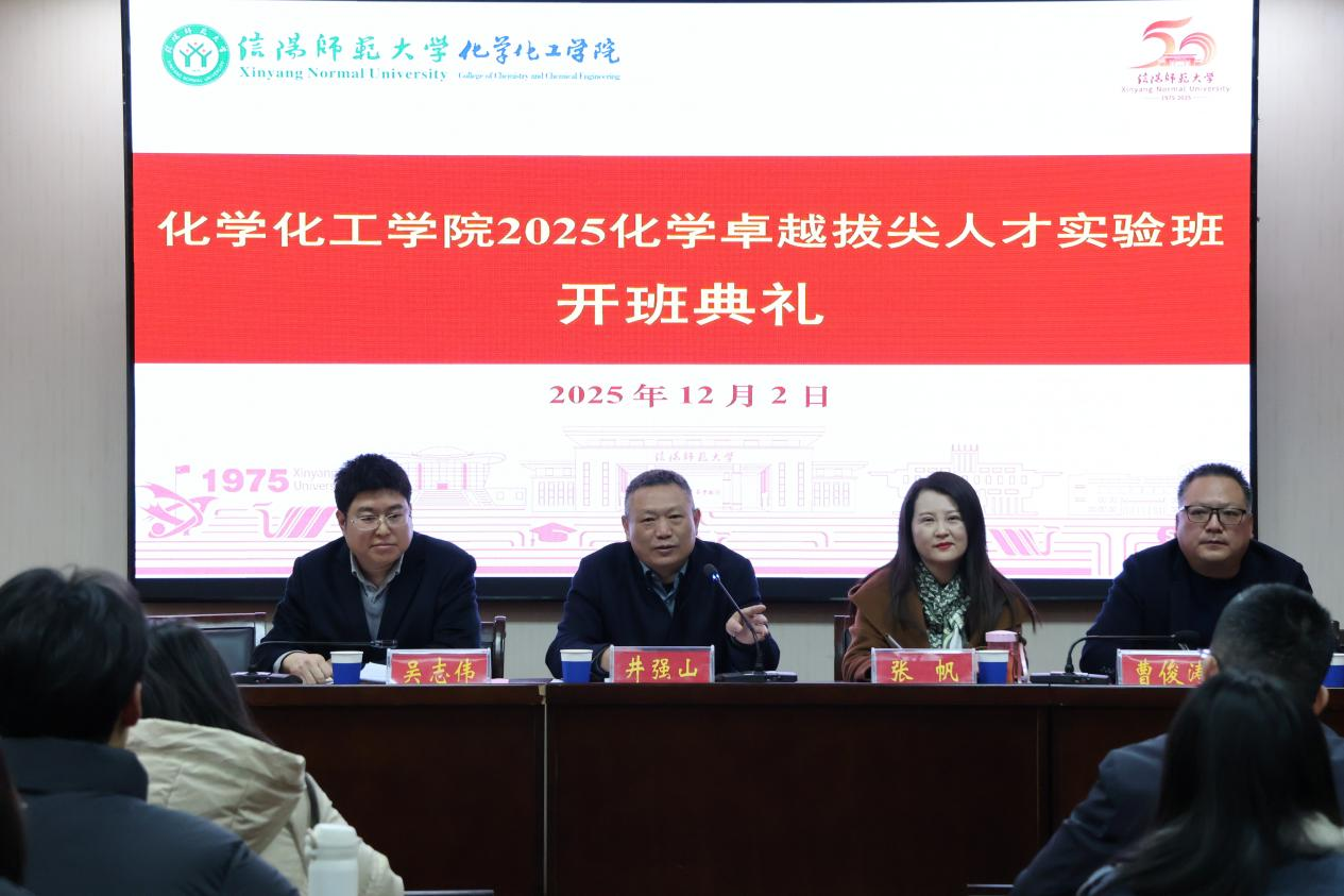 2025年12月2日,Beat365唯一官方网站2025化学卓越拔尖人才实验班开班典礼在化学楼407学术报告厅隆重举行。副校长井强山出席典礼,教务处、Beat365唯一官方网站负责人、实验班导师团成员和全体学员参加典礼。