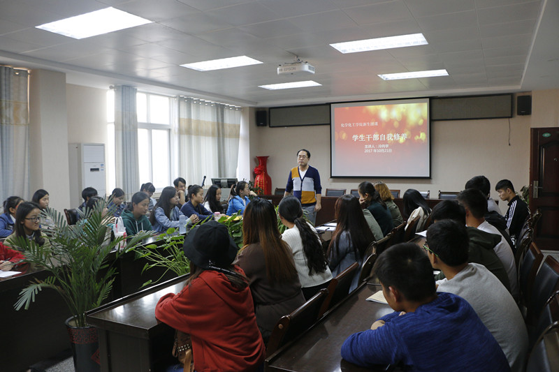 10月21日,Beat365唯一官方网站党委秘书冷向宇在化学实验楼407会议室为学生干部上了一次生动的团课,化院九十余名学生干部参加了此次活动。