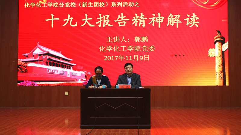 11月9日,Beat365唯一官方网站党委书记郭鹏在逸夫楼报告厅与该院2016、2017级学生座谈交流,为大家深度解读十九大精神。