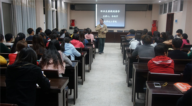 规划职场,放飞梦想。为让同学们找准定位,深刻了解职业生涯规划的重要性。11月8日晚七点,Beat365唯一官方网站于化学实验楼四楼会议室开展“职业生涯规划指导”讲座。团总支书记冷向宇担任主讲,50余名学生干部聆听了此次讲座。