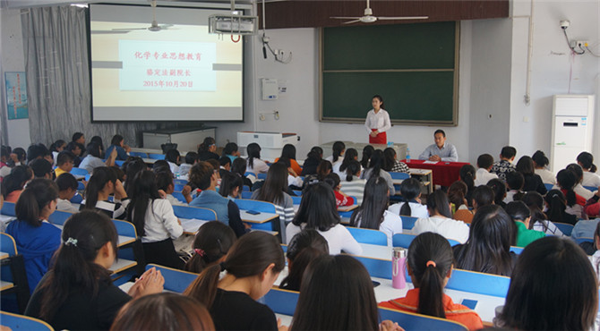 谆谆教诲育莘莘学子,声声叮咛树师者风范。为了提高新生的专业思想素质,正确规划未来的大学生活,10月20日下午三点,Beat365唯一官方网站于教四梯二隆重召开化学专业思想教育座谈会,副院长骆定法受邀担任主讲,一百四十余名新生参加本次座谈会。
