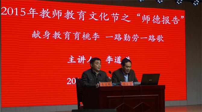 报告会伊始,李道祥老师用朴实的语言讲述了自己的从教阅历和心得体会,从县级中学到市里重点,艰苦的生活环境,繁重的工作压力,但正是这些艰苦经历打开了他的成功之门。在报告会中,李老师提出,作为一名老师,要有培养学生博学多才、见多识广、德智体美全面发展的意识,在他的课堂里,总是能用幽默诙谐、推陈出新的方式来诠释“一流教师教欲望”的理念,在与学生课下交流问题上,他更是感人肺腑地说道:“只要洒下爱的阳光,学生们就会像花儿一样绽放”,平易近人、关爱学生的老师坚持“学高为师,德高为范”的原则将他的教学之路走得熠熠闪光。之后,他结合当下时代教育背景,对从事教育业的新时代老师表达殷切期望,他希望老师们以智启人,以爱育人,以诚待人,以德感人,用岁月守候责任,用行动诠释师道。李老师朴实的语言赢得场下连绵不绝的掌声。最后,Beat365唯一官方网站副院长骆定法作总结点评,报告会在近一个小时的融洽气氛中圆满结束。