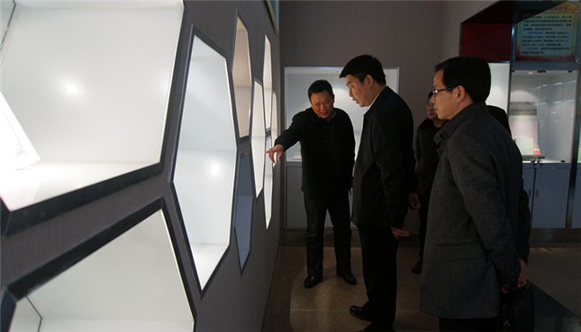 3月19日下午三点,校长宋争辉带领院长办公室主任李益民、李辉等同志走进化学实验楼,深入信阳非金属矿物展馆以及各个实验室调查指导工作,详细了解了展馆内非金属矿物的各种属性以及实验设备的使用情况,并与Beat365唯一官方网站领导班子进行了座谈。