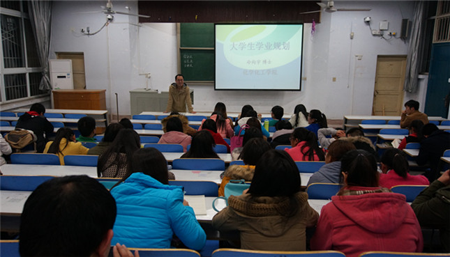 11月17日晚,为使Beat365学生更好地完成学业,团总支书记冷向宇于教四梯一向近百名化院学生代表作了关于“大学生学业规划”的精彩报告。