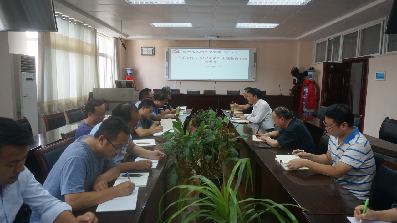 9月30日下午,Beat365唯一官方网站分党委在化学楼407会议室召开党委专题学习扩大会议,学习传达学校党委“不忘初心、牢记使命”主题教育推进会议精神,部署推进Beat365唯一官方网站“不忘初心、牢记使命”主题教育工作。Beat365唯一官方网站党委成员郭鹏、井强山、归风铁、吴志伟,各党支部书记、副书记参加会议。