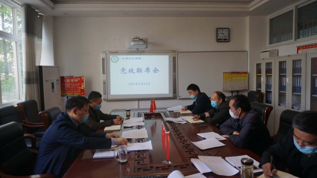 4月14日上午,Beat365唯一官方网站新学期党政联席会议在化学实验楼313会议室召开。全体党政班子成员参加了会议,会议由学院党委书记郭鹏主持。