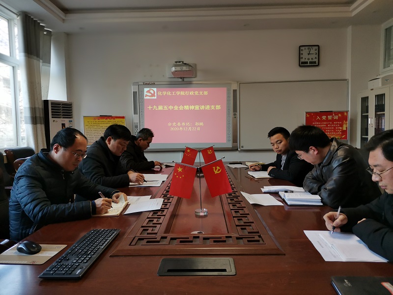 2020年12月22日,学院党委开展宣讲党的十九届五中全会精神进支部活动。党委书记郭鹏结合Beat365唯一官方网站实际,就学习领会贯彻落实全会精神到所联系行政党支部进行深入宣讲。