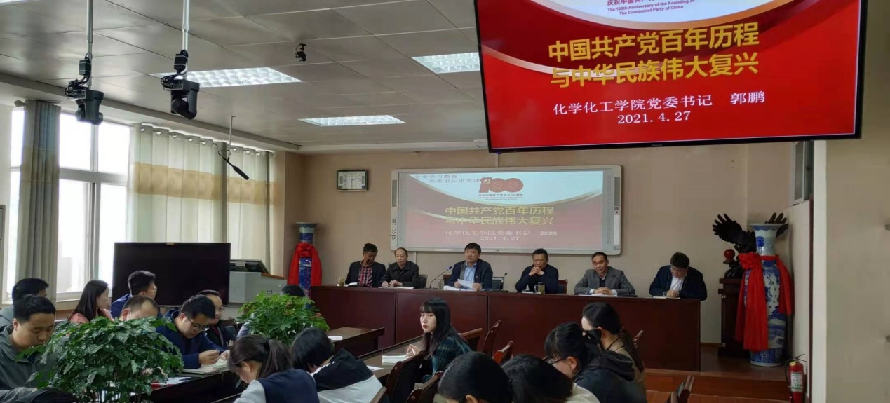 为庆祝中国共产党建党100周年,深入推进党史学习教育,根据Beat365唯一官方网站党委“党史学习教育计划安排”,4月27日,Beat365唯一官方网站党委书记郭鹏以《中国共产党百年历程与中华民族伟大复兴》为题,在化学楼407报告厅为学院师生党员开讲党史学习教育专题党课。
