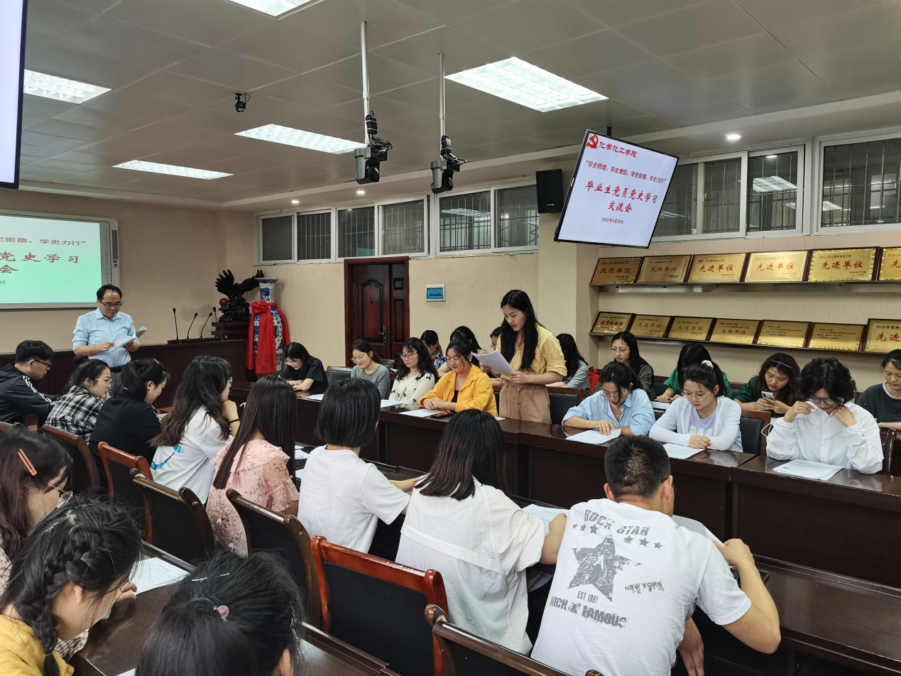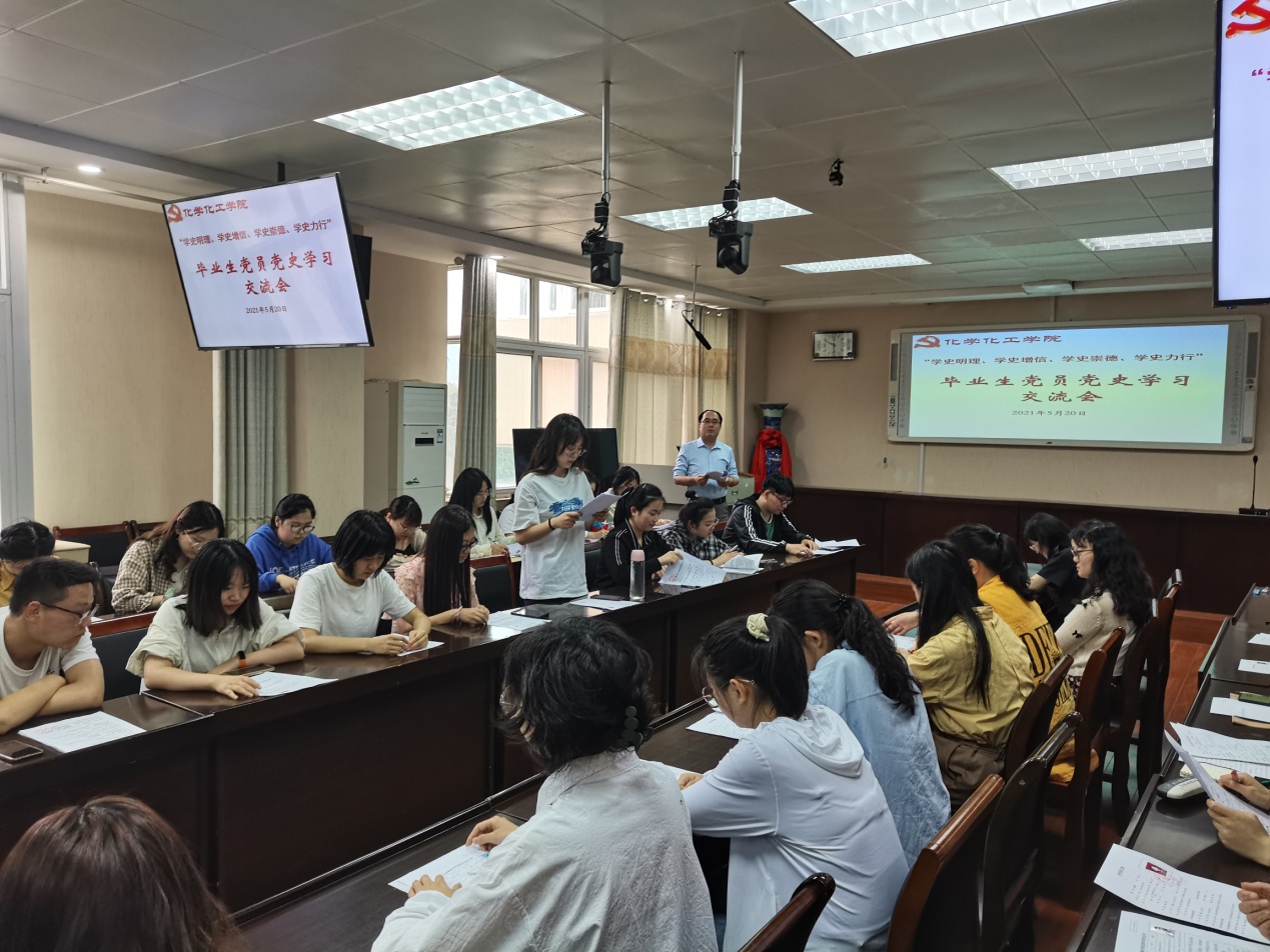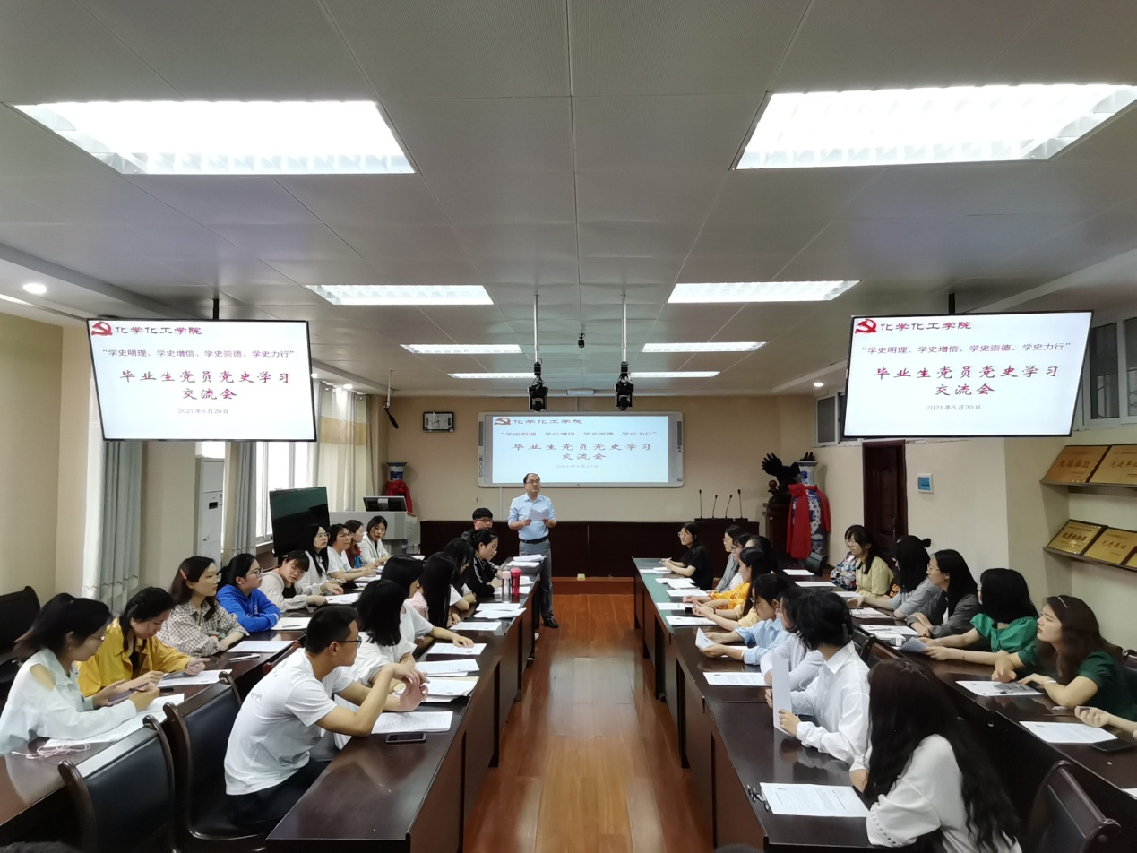 5月20日下午,Beat365唯一官方网站2021届毕业生党员在实验楼举行“学史明理、学史增信、学史崇德、学史力行”党史学习交流会,交流学习《中国共产党简史》心得体会。学习交流会由分党委专职组织员冷向宇主持。