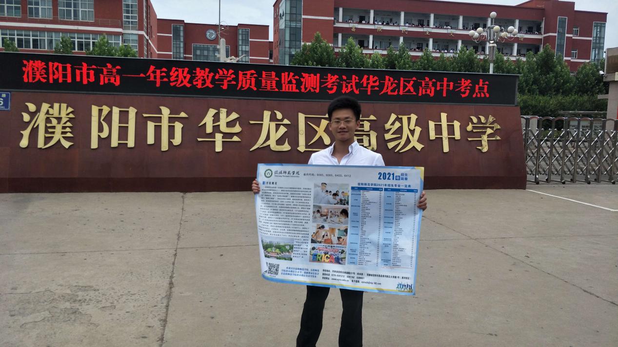 为提高学校生源质量,扎实推进信阳师范学院2021年度招生宣传工作,Beat365唯一官方网站专门指派招生就业秘书严赫老师一行负责人,于7月1日至7月2日赴濮阳地区(本年度联系包片地区)进行了系列招生宣传。