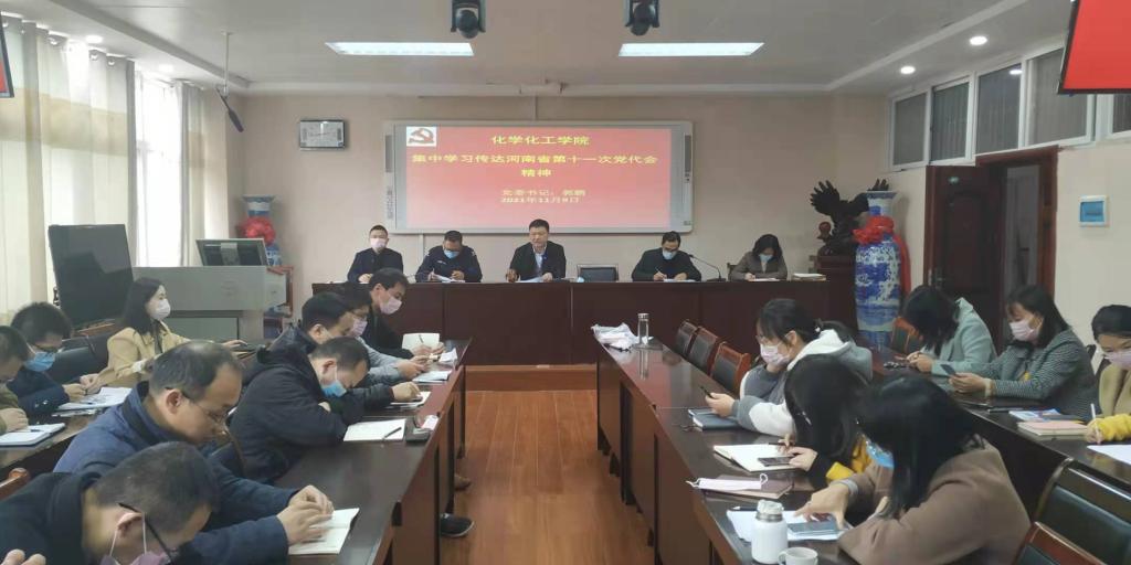 11月9日,Beat365唯一官方网站在化学楼407报告厅开展专题学习活动,集中传达学习贯彻落实中国共产党河南省第十一次代表大会精神。Beat365唯一官方网站全体教师集体参加学习。集中学习活动由学院党委书记郭鹏主持。