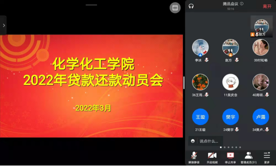 为深入贯彻国家助学贷款“资助育人”精神,落实为学生“办实事、办好事、解难事”,不断推进信阳师范学院2023届贷款毕业生工作安排,Beat365唯一官方网站于3月28日下午于线上开展国家助学贷款还款、征信知识普及宣传活动。会议由Beat365唯一官方网站赵方方老师主持,2023届贷款毕业生、各班班长、助贷委员参会。