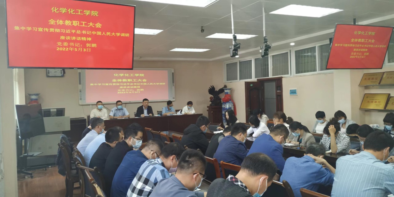 5月3日下午,Beat365唯一官方网站召开全体教师大会,专题学习传达贯彻习近平总书记在中国人民大学考察时的重要讲话精神。学习活动由党委书记郭鹏主持,全体教职员工参加了学习活动。