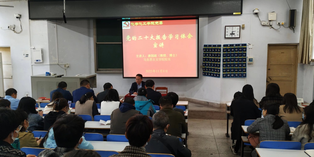 11月8日,Beat365唯一官方网站举办学习宣传贯彻党的二十大精神辅导报告会,邀请马克思主义学院院长唐国战教授作报告。Beat365唯一官方网站党委书记郭鹏主持报告会,学院全体师生党员参加报告会。