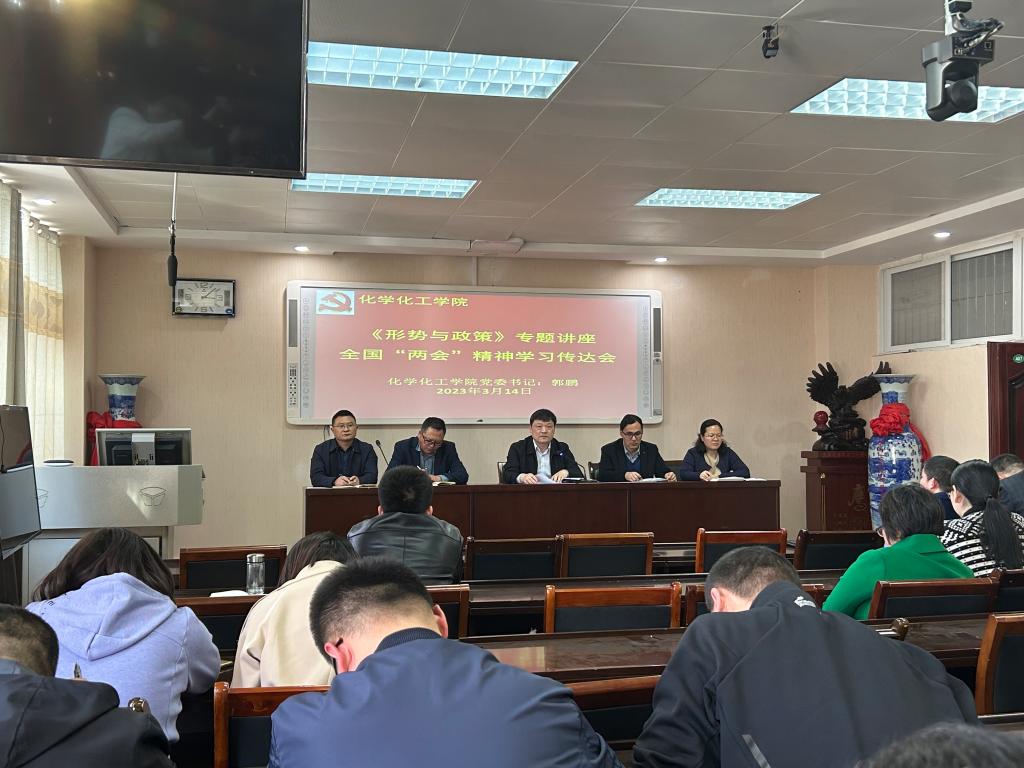 草长莺飞、春暖花开,三月春天里,全国政协十四届一次会议、第十四届全国人大一次会议分别于4日、5日在北京召开,并已圆满胜利闭幕。为进一步深入学习贯彻“两会”精神,3月14日下午,Beat365唯一官方网站全体教职工在化学实验楼407报告厅开展《学习传达全国“两会”精神》形势政策学习。形式政策课由党委书记郭鹏主讲。