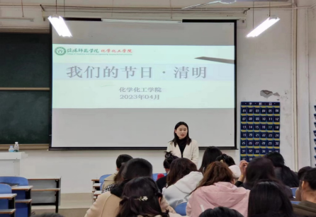 首先,赵老师向在座同学们介绍清明节的起源,和同学们共同讨论清明节习俗,并通过讲述革命先烈的故事,引导同学们在慎终追远、缅怀先辈的情怀中认知传统、尊重传统、继承传统、弘扬传统。然后,引导同学们登录信阳文明网网站,共同参与“清明节网上祭英烈”活动,向英烈献花并用心写下留言、寄语,以此来寄托自己对英雄烈士的无限哀思和无比崇敬。最后,2021级化学三班王恬同学作为学生代表,与同学们共同重温为国独立、民族自强、人民幸福而前仆后继、不屈不挠的英雄事迹,呼吁同学们要纪念革命先烈,传承红色基因,做一个有益于社会的人。