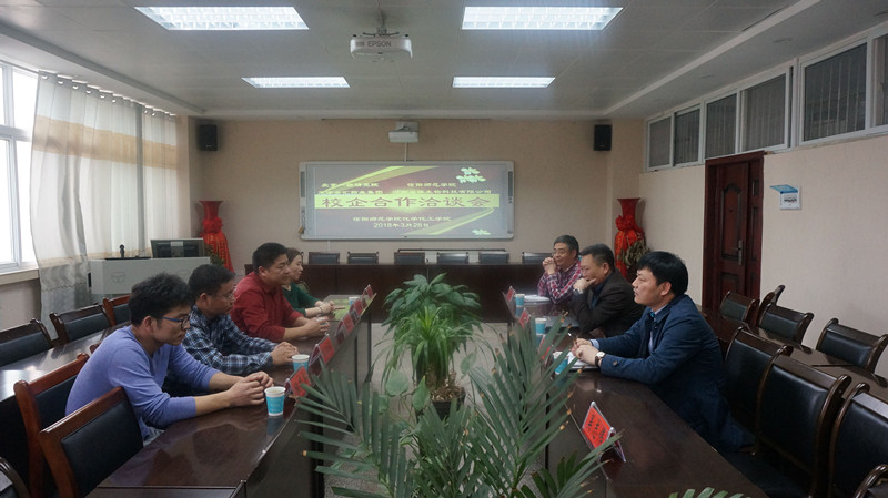 3月28日,信阳师范学院Beat365唯一官方网站与北京一轻研究院、天津金汇药业集团、河南甾体生物科技有限公司校企合作洽谈会在化学实验楼407召开,北京一轻研究院院长甄西合(93级化学校友)、天津金汇药业集团董事长程绍国(83级化学校友)与化院领导班子一起参加了座谈,会议由化院党委书记郭鹏主持。
