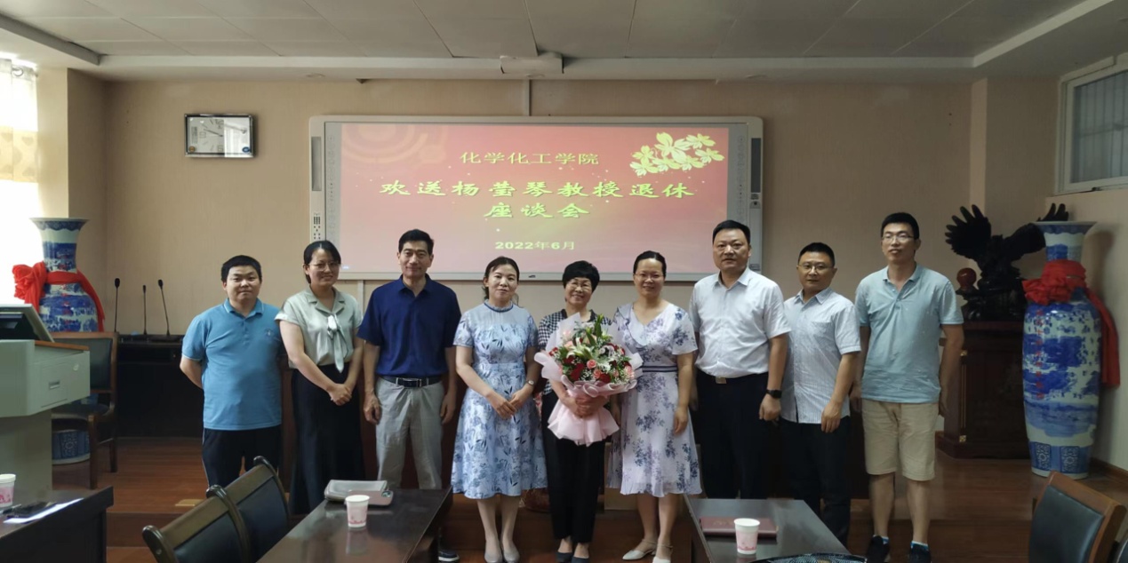 6月21日上午,Beat365唯一官方网站举行杨莹琴教授退休欢送座谈会。人事处、离退休职工管理处、Beat365唯一官方网站党政领导及化学系、有机化学党支部党员教师代表一起参加了欢送座谈活动。座谈会由学院党委书记、分工会主席郭鹏主持。