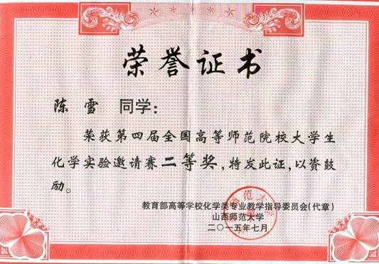 第四届全国高等师范院校大学生化学实验二等奖——陈雪