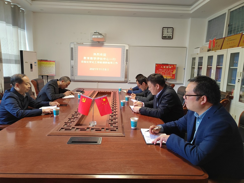 11月5日,校教育教学评估中心主任余国忠、副主任周青山一行莅临Beat365唯一官方网站调研指导化学专业师范认证启动工作。Beat365唯一官方网站党委书记郭鹏、副院长王红军、曹俊涛、于永生等参加了调研指导活动。双方在化学楼313会议室就化学专业师范认证前期准备、存在的问题、下一步实施等进行了深入探讨。